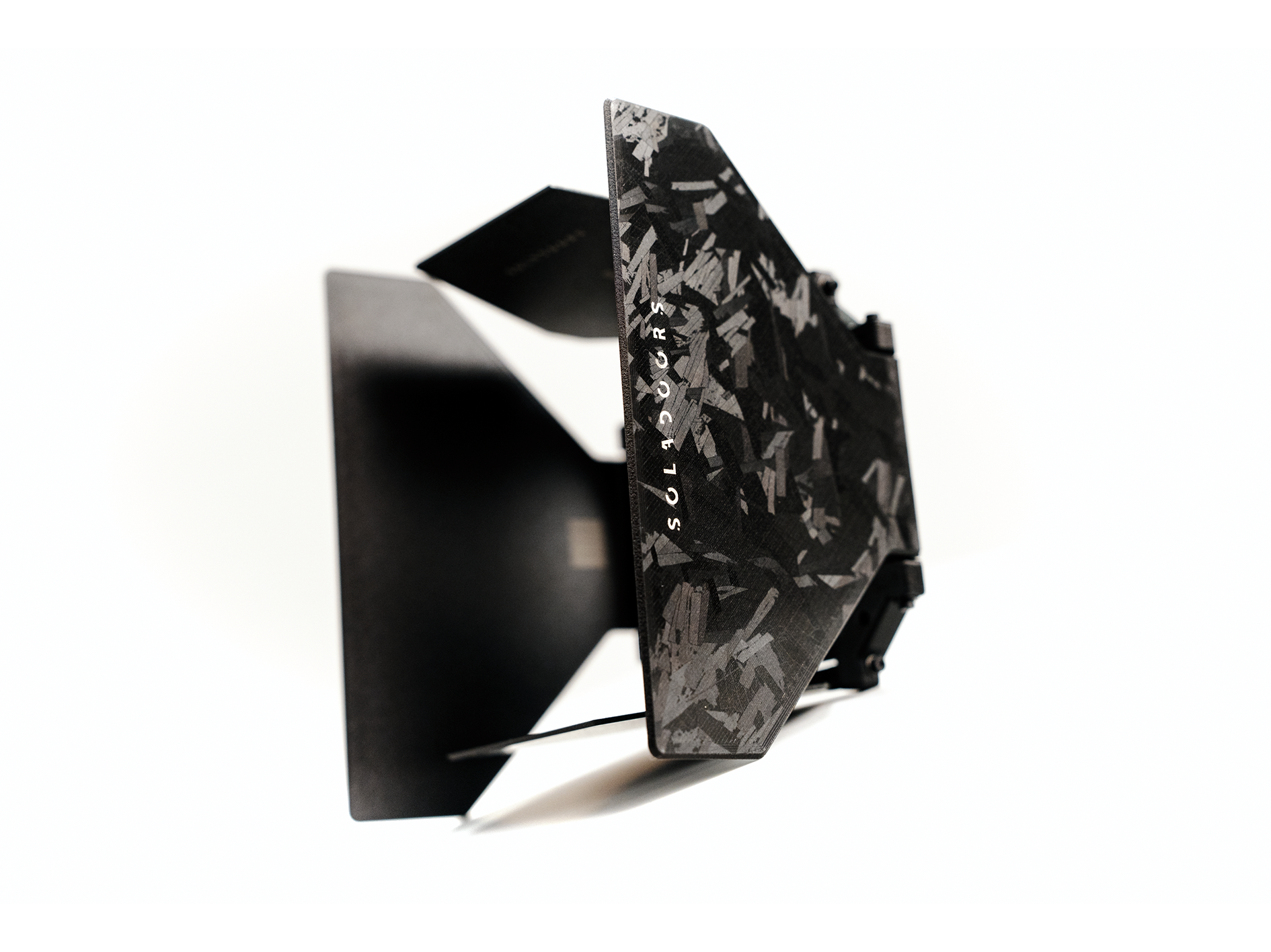 An ultra-lightweight 4-leaf barndoor attachment for the Astera Solabulb.