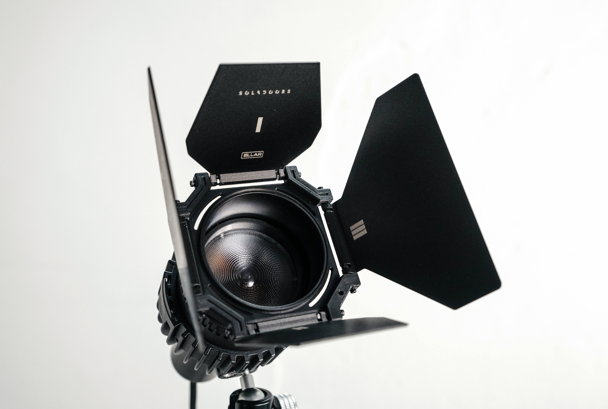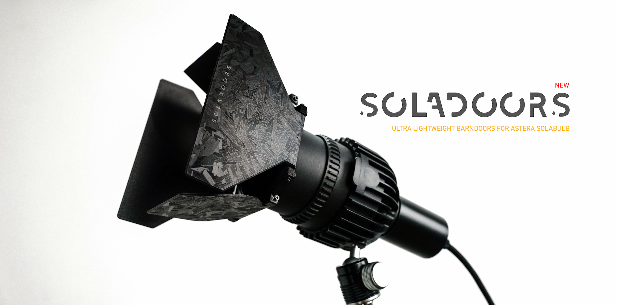 An ultra-lightweight 4-leaf barndoor attachment for the Astera Solabulb.